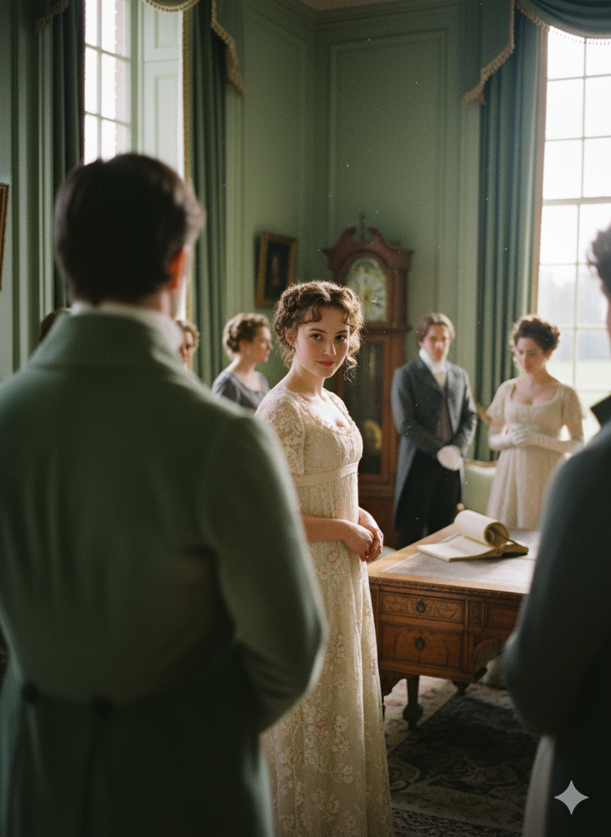 Enter the world of Regency-era England in 1811-1812, where society's intricate dance of manners, class, and matrimony shapes every interaction. The arrival of wealthy gentlemen in the neighborhood sets off a whirlwind of balls, visits, and social calls, where first impressions often deceive and true character reveals itself slowly through wit, conversation, and unexpected encounters. This is a world where propriety governs every action, where an entailed estate threatens a family's security, where a single man in possession of good fortune is universally considered in want of a wife. Here, pride must be humbled and prejudice overcome for love to flourish. The grand estates of the gentry stand as symbols of wealth and status, while the drawing rooms and ballrooms become theaters for romance, misunderstanding, and eventual reconciliation. Navigate the complexities of Regency society, where a poorly-timed remark can damage a reputation, where elopements threaten familial honor, and where the difference between superficial goodness and actual goodness must be carefully discerned. Will you maintain your dignity in the face of condescension? Will you see past your initial judgments to discover true worth? In this world of elegant manners and sharp wit, every conversation matters, every dance carries meaning, and every letter can change the course of a life.